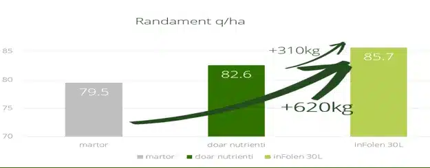 - Infolen stimulează translocarea și transformarea azotului la nivel foliar