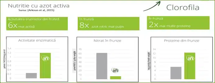 - Infolen stimulează activitatea enzimelor implicate în metabolizarea azotului la nivel foliar