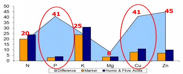 Este de menționat că principala particularitate a acizilor organici, reprezentați de acizi humici (AH) și fulvici (AF), este materia organică specifică, supusă unui proces industrial de activare, care face ca acești acizi organici să fie de 120 de ori mai reactivi ca orice AH și AF ce se regăsesc în produsele similare din piață.
