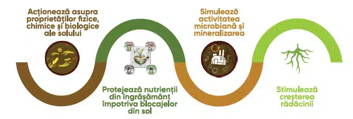 Stimulează pornirea în vegetație a plantelor, dezvoltarea sistemului radicular și îmbunătățirea vieții microbiologice a solului.